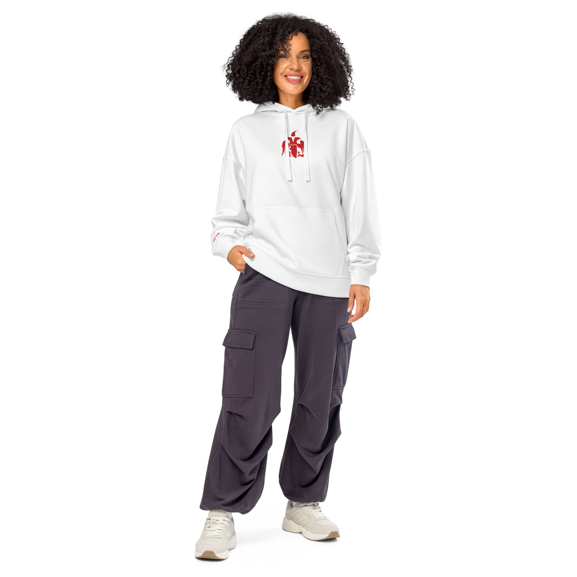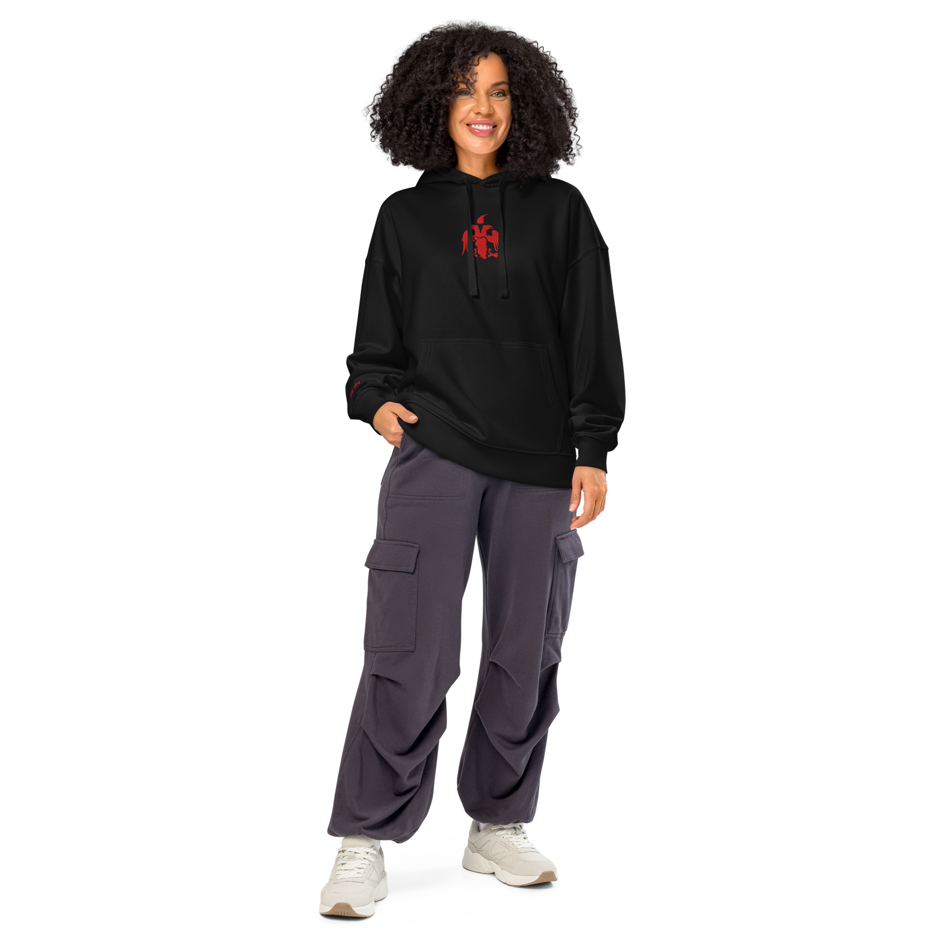 Kjo bluzë me kapuç është e qëndrueshme për mjedisin, e butë dhe e rehatshme. Ka një prerje të lirshme që e bën të përshtatshme si për pushim, ashtu edhe për përdorim të përditshëm. Materiali ka një përfundim të lehtë si kadife, ndërsa mëngët elastike dhe xhepi “kangur” i japin një pamje praktike dhe të rregullt.